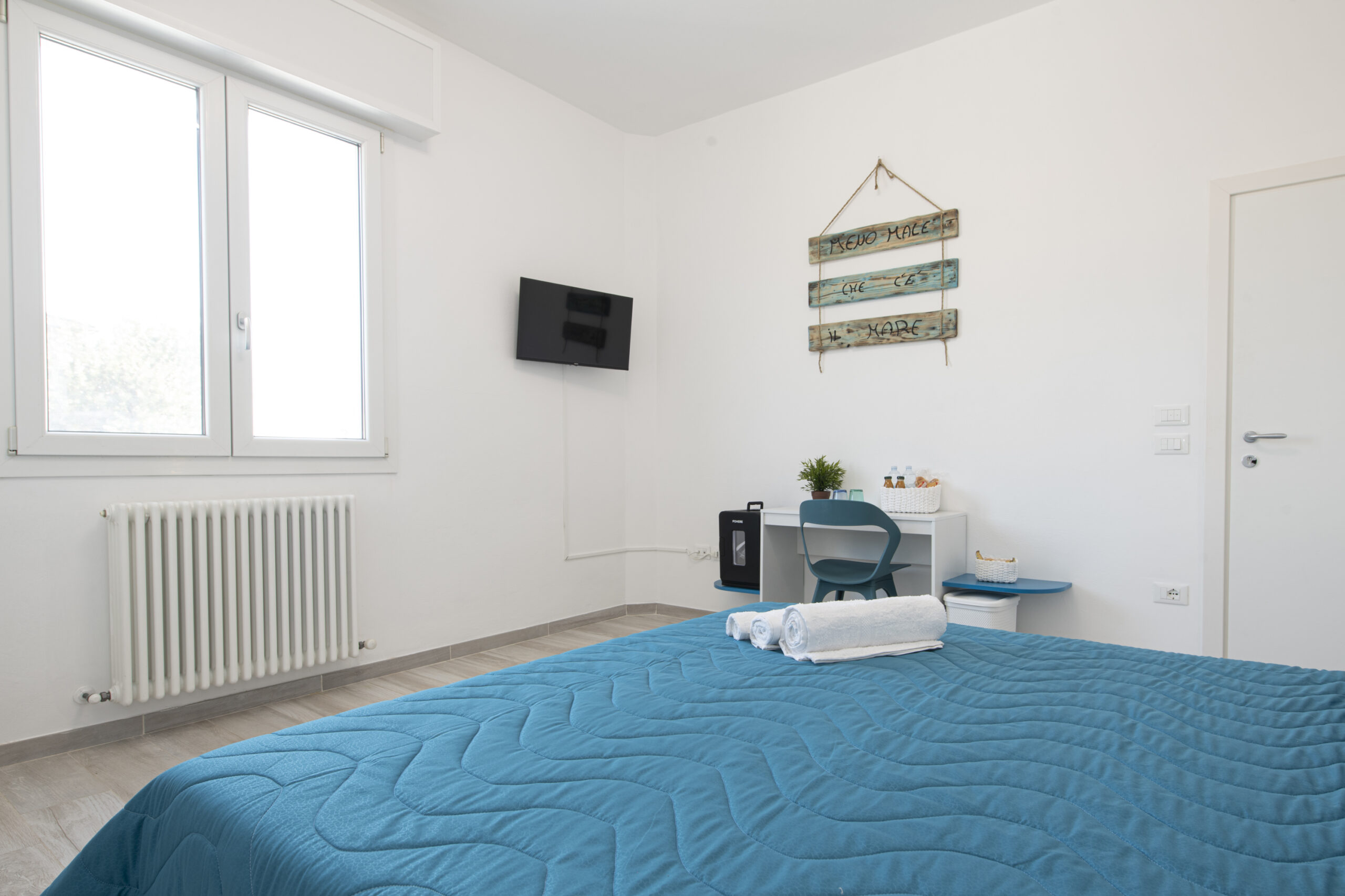 La Camera Oceano è una matrimoniale dal carattere rilassante, ideale per chi desidera un’atmosfera leggera e rigenerante.